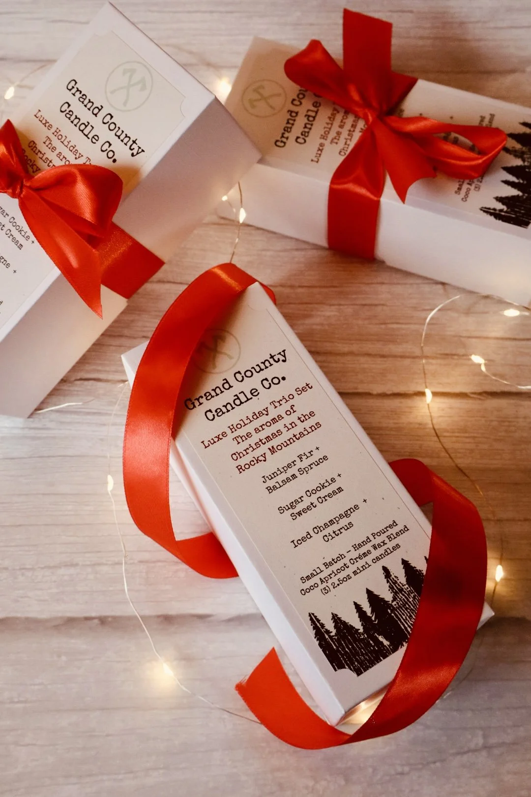 Luxe Holiday Trio set of (3) 2.5oz mini Aura candles.